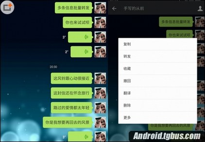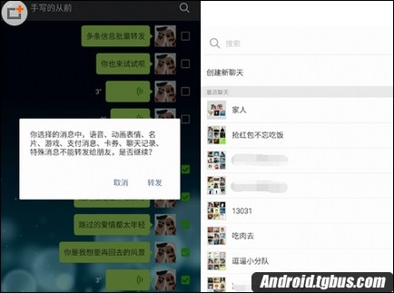 3.語音、動畫表情等暫時無法轉發,若轉發內容中包含這些內容的話會出現提示,然後選擇需要轉發到的好友或者群組;