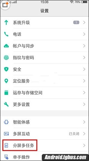 2、進入到設置頁面之後在其下方找到並點擊進入到【分屏多任務】界面,如下圖所示: