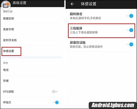 一加手機X運行的是氫OS系統,手機內置了三指截屏功能,而需要使用該功能前提是要開啟這個功能。具體的操作方法是:先進入到【設置】---【高級設置----【體感設置】----【三指截屏】開啟旁邊的開關即可,如下圖所示: