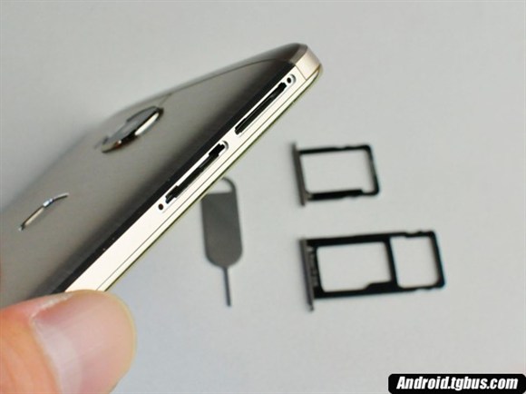 在卡槽設計方面,榮耀暢玩5X機身左側配備兩個卡槽,上方為Micro SIM卡槽,下方為NanoSIM卡槽以及MicroSD卡槽。