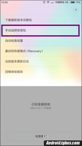 3.手機進入設置--系統更新,點擊右上角的“...”,選擇手動選擇安裝包,選擇你放進去的zip刷機包即可。