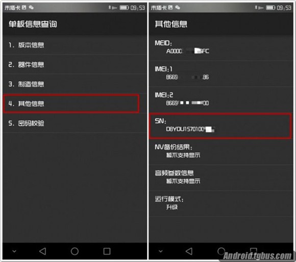 進入單板信息查詢界面之後,再點擊“其他信息”,即可看到IMEI碼和S/N碼等信息。