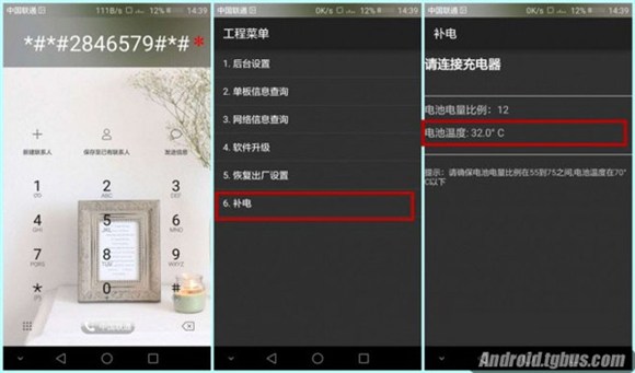 在手機的撥號界面輸入*#*#2846579#*#*,進入工程模式 - 補電 - 即可可以查看電池溫度。