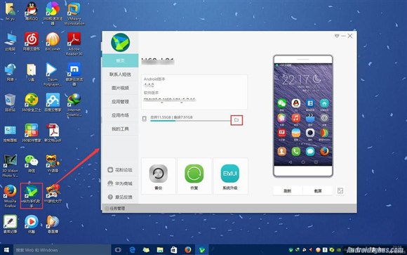 1、將手機用數據線連接電腦,在桌面上雙擊華為手機助手,打開主界面的文件管理。