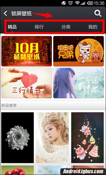 4、比如,點擊”鎖屏壁紙“,就可以進入鎖屏專用的壁紙欄目裡,可以看到各種各樣的壁紙;