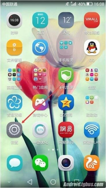 1.在手機主桌面上點擊設置圖標。