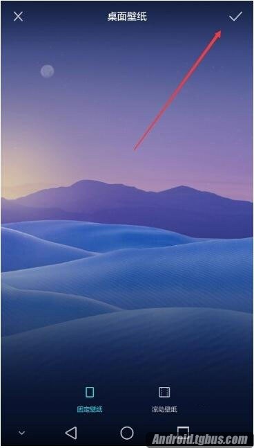 6.點擊進入桌面壁紙設置界面,我們調整好後點擊右上角的√ 圖標進行設置。