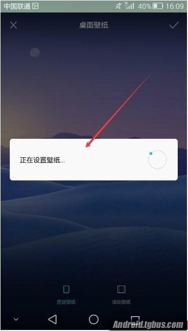 7.點擊後,系統提示正在設置壁紙,稍等一會就可以完成桌面壁紙設置了。