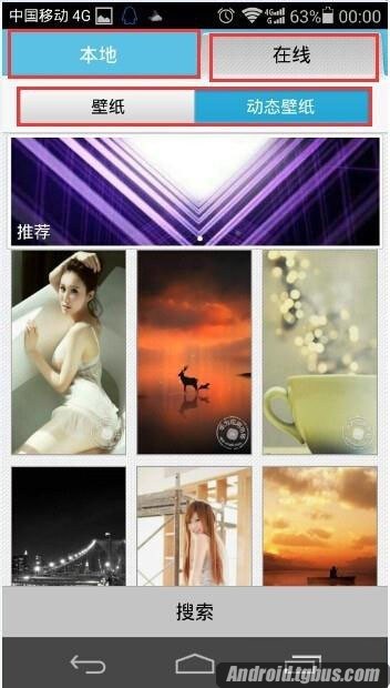 4.在桌面壁紙選擇窗口中,可以選擇本地的圖片,也可以選擇網絡資源。其中無論是本地資源還是網絡資源,均分為靜態壁紙和動態壁紙。動態壁紙即為動畫,會動的壁紙,點選一個自己喜歡的壁紙。