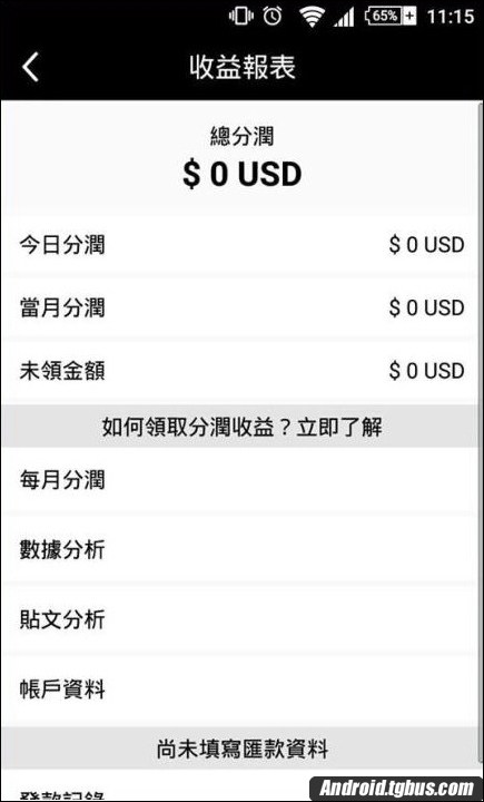 這個App還是有與眾不同的地方,個人的首頁介面比Ig多了一個東西,就是今日收益,而拍照的按鈕點下去,除了拍照、錄影之外,還有直播影片的選項。
