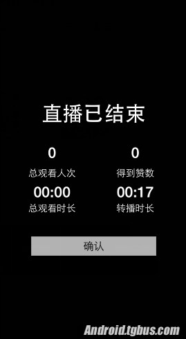 3、這個時候,17APP會彈出直播已結束的畫面,並且會有觀看人數、得到贊數、轉播時長等相關信息,這是可以證明自己人氣的最好寫照啦。