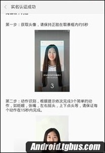 根據系統提示,將攝像頭對准正臉做出系統提示的動作,如左右轉頭,張嘴,眨眼等。系統會自動識別您的真實身份。