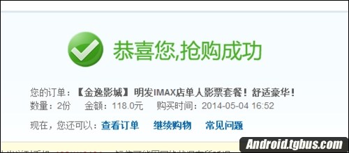 8、成功支付後,網頁會自動跳轉回糯米網的頁面,顯示“恭喜您搶購成功”,下一篇將分享百度糯米網的退款步驟。