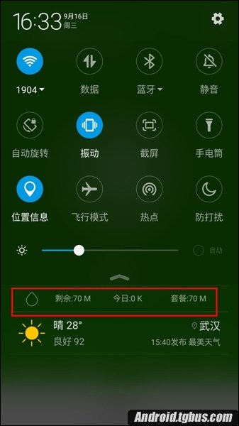3、最後,我們在通知欄便可看到360奇酷手機每天的流量使用情況額,如下圖所示: