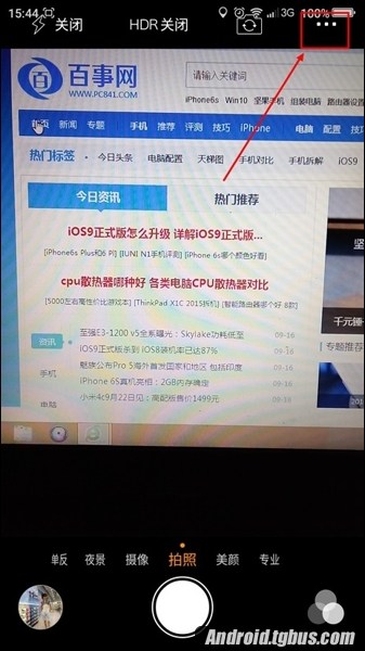 第二步:然後我們就會進入到相機拍照界面,在其界面的右上角找到“省略圖標”,點擊一下,如下圖所示: