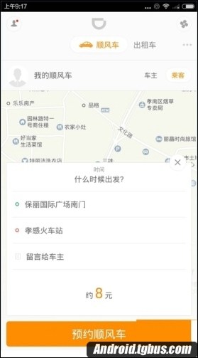 第三步:輸入你要去的地點和出發時間,點擊“預約順風車”。