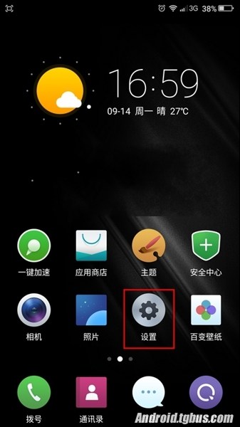 一、首先進入到360奇酷手機青春版系統桌面,在其桌面找到【設置】應用圖標,點擊進入,如下圖所示: