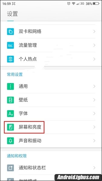 二、然後進入到設置頁面之後,往下滑動找到【屏幕和亮度】一欄,如下圖所示:
