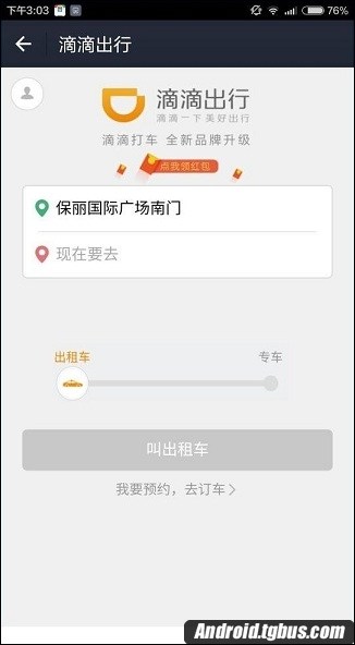 二、我們進入到滴滴出行界面,即會有滴滴出行點我領紅包的提示即可進入到領紅包界面。