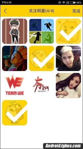 6、最後選擇你想要關注的明星,點擊右上角的“完成”。