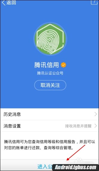 3、關注騰訊信用之後,接下來我們再從最下方的這個入口點擊【進入公眾號】。