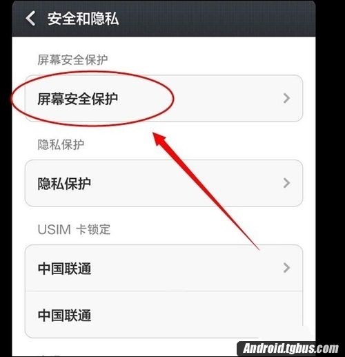 3、在第一項中的“屏幕安全保護”選項中,點擊一下。