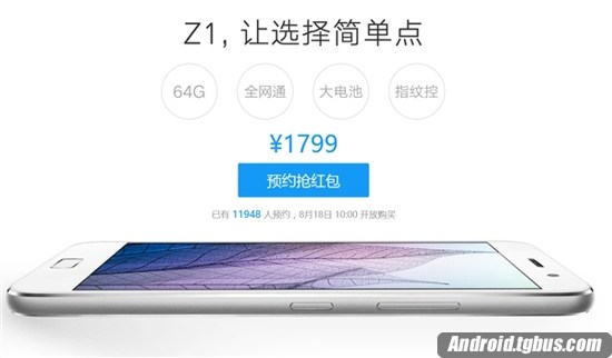 ZUK Z1官網預約地址:http://sale.zuk.com/z1/