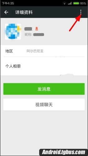 1、首先在通訊錄找到自己想要刪除的好友,進入到他的詳細資料頁面,在其頁面的右上角點擊一下,如下圖所示: