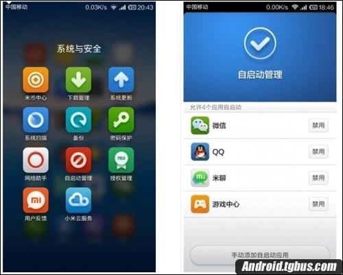 解決方法:對於自啟動程序過過造成的卡頓,我們可以使用小米miui系統自帶的自啟動管理(系統與安全——自啟動管理),把不需要的一些程序禁止自啟動,這樣,我們在開機的時候,就會流暢一些。