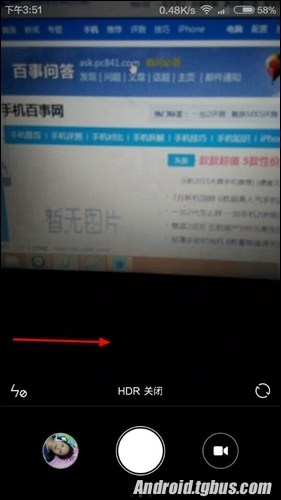 2、打開相機之後,我們發現默認的只能是點擊拍照按鈕才能拍攝,這個時候用手指往右邊屏幕滑動一下,如下圖所示: