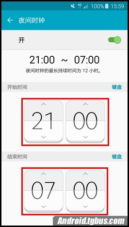 - 【夜間時鐘】功能開啟後,用戶可以設置時鐘保持開啟的持續時間。當手機主屏幕鎖定時,S6 edge側屏就會出現一個微型時鐘。