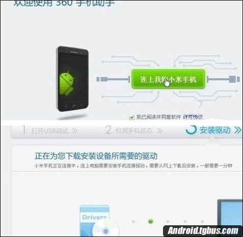 4、此時360手機助手正在安裝紅米手機驅動程序,等待安裝完成後會自動在手機中安裝360手機助手,您就可以成功連接紅米手機了。