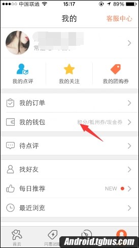 1、進入大眾點評首頁後,點擊“我的”,然後進入我的錢包,如圖。