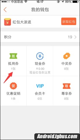 2、在我的錢包中,大家可以看到抵用券、現金券、優惠促銷等系列,點擊抵用券就可以看到自己獲得的券號啦。