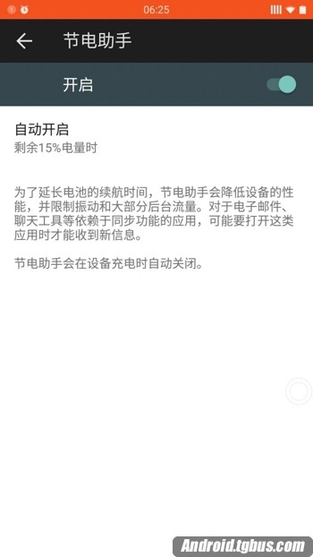 為了延長電池的續航時間,節電助手會降低設備的性能,並限制振動和大部分後台流量。對於電子郵件、聊天工具等依賴於同步功能的應用,可能要打開這類應用時才能收到信息。另外,節電助手會在設備充電時自動關閉。