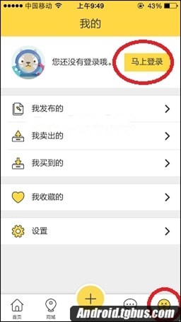 4.再次點擊“我的”,點“馬上登錄”,如圖: