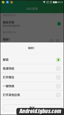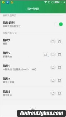 一、在大神Note3桌面點擊進入【設置】,進入設置後,我們再找到【指紋設置】,點擊進入之後,就可以錄入指紋了,大神Note3指紋功能是相當豐富的,可以實現指紋解鎖、指紋支付、指紋快速拍照、指紋打開微信、指紋快速撥號、指紋加密應用以及不同指紋打開不同應用,功能非常全面,如下圖所示: