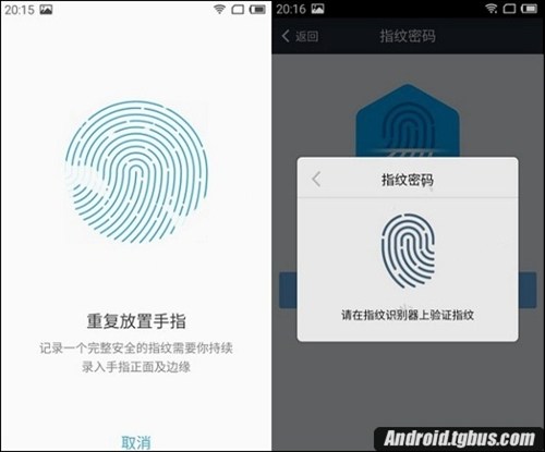 二、在設置中,再點擊進入“指紋設置”,然後按提示設置好四位密碼之後,就可以為您的MX5添加指紋了。魅族MX5添加指紋盡管很簡單,按照提示操作即可。不過中間過程相對來說比較繁瑣,前前後後抬起按下手指大概有20次左右才完成一個指紋的錄入,如下示意圖所示。