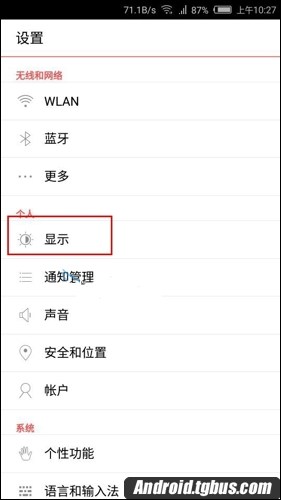 1、進入努比亞Z9 mini設置,然後選擇進入“顯示”設置,如下圖所示:
