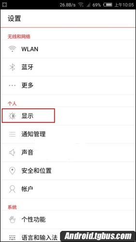 1、進入到努比亞Z9 mini設置頁面,在其下方找到【顯示】一欄,點擊進入,如下圖所示: