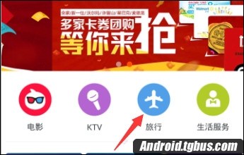 2、然後出現了淘生活主頁面,點擊“旅行”選項,如下圖所示。