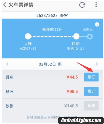 5、點擊車次以後,能顯示該車次的基本信息,再點擊“預訂”按鈕,如下圖所示。
