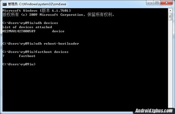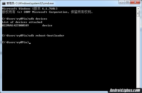 c. 然後輸入 adb reboot-bootloader,手機將重啟並進入一個白色背景的界面,這就是fastboot模式