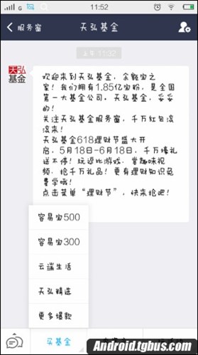 3、點擊進入“天弘基金”,然後點擊下面的買基金,如下圖所示。