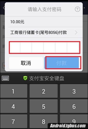 6、在選項欄填寫卡號,在服務閱讀欄大勾,會彈出“請輸入密碼”對話框,輸入密碼,按確定付款,完成交易。