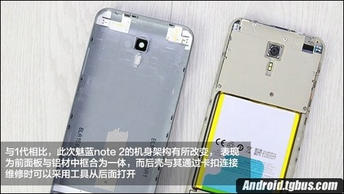 3、魅藍Note2這樣的後蓋結構設計也使卡扣直接開在了強度可靠的鋁材中框上面,不會像上一代魅藍Note那樣,拆卸後蓋容易導致塑料卡扣斷裂。