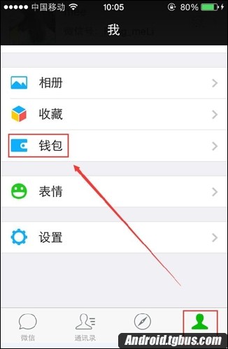 2、進入微信——我--錢。