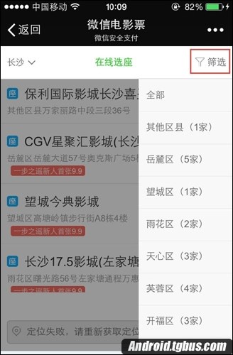 5、然後選擇電影院,可以篩選區域。
