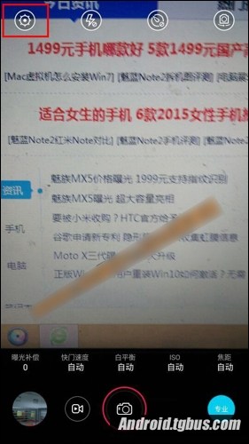 二、然後進入相機界面,在其頁面後的左上角找到【齒輪標志】,點擊一下,如下圖所示: