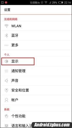 2、進努比亞Z9 mini設置後,我們再選擇“顯示”設置,如下圖所示: